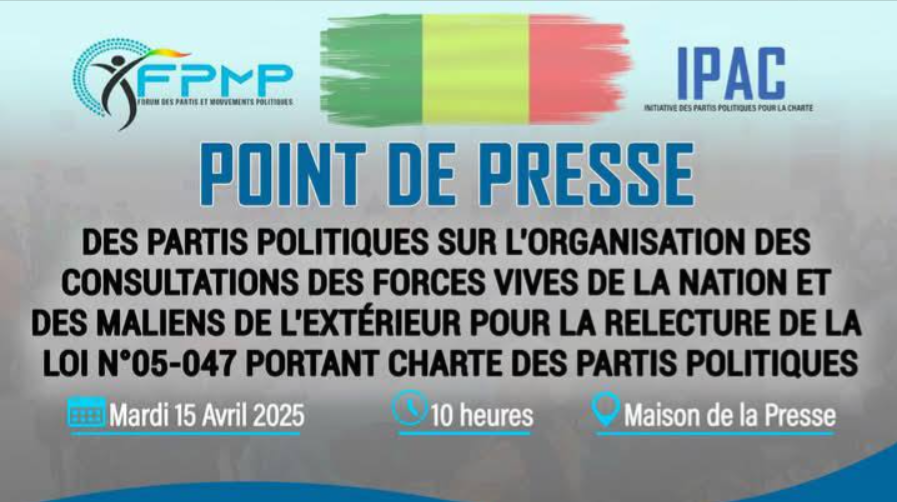 Au Mali, plus de 100 partis politiques tiendront une conférence de presse ce mardi 15 avril pour dénoncer et s’opposer aux consultations des forces vives de la nation et des Maliens de l’extérieur, visant la relecture de la loi n° 05-047 portant charte des partis politiques, initiées par les autorités militaires. Des informations relayées dans les coulisses, notamment par les partisans des militaires, suggèrent que ces consultations ont pour objectif de demander la dissolution des partis politiques. Selon les représentants de ces partis, cette décision de dissolution est dissimulée derrière ces consultations, afin de donner une apparence de légitimité. Ils la qualifient de « violation de la Constitution ».